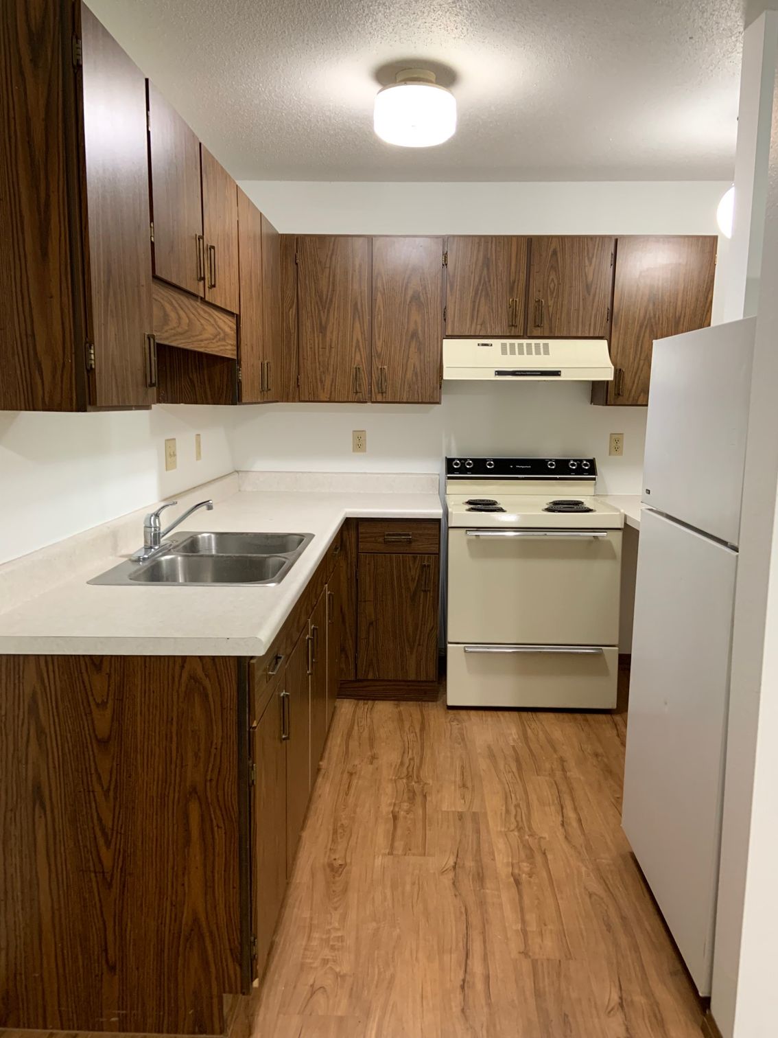 This unit features a full-size refrigerator, and stove.